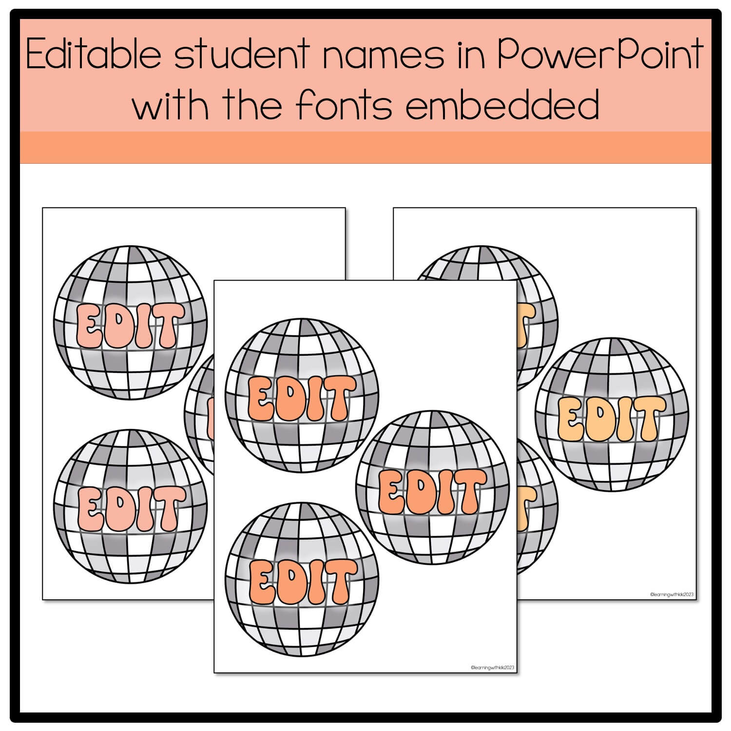 Decorate your classroom for Back to School with this groovy, retro disco floral bulletin board kit! This bulletin board matches my Disco Floral Classroom Decor. Decorate for the beginning of the year with this bulletin board idea or classroom display. These printable retro designs include ideas for sparkle stars, roller skates, phrases, bunting, borders and editable student names (through PowerPoint with the fonts embedded).