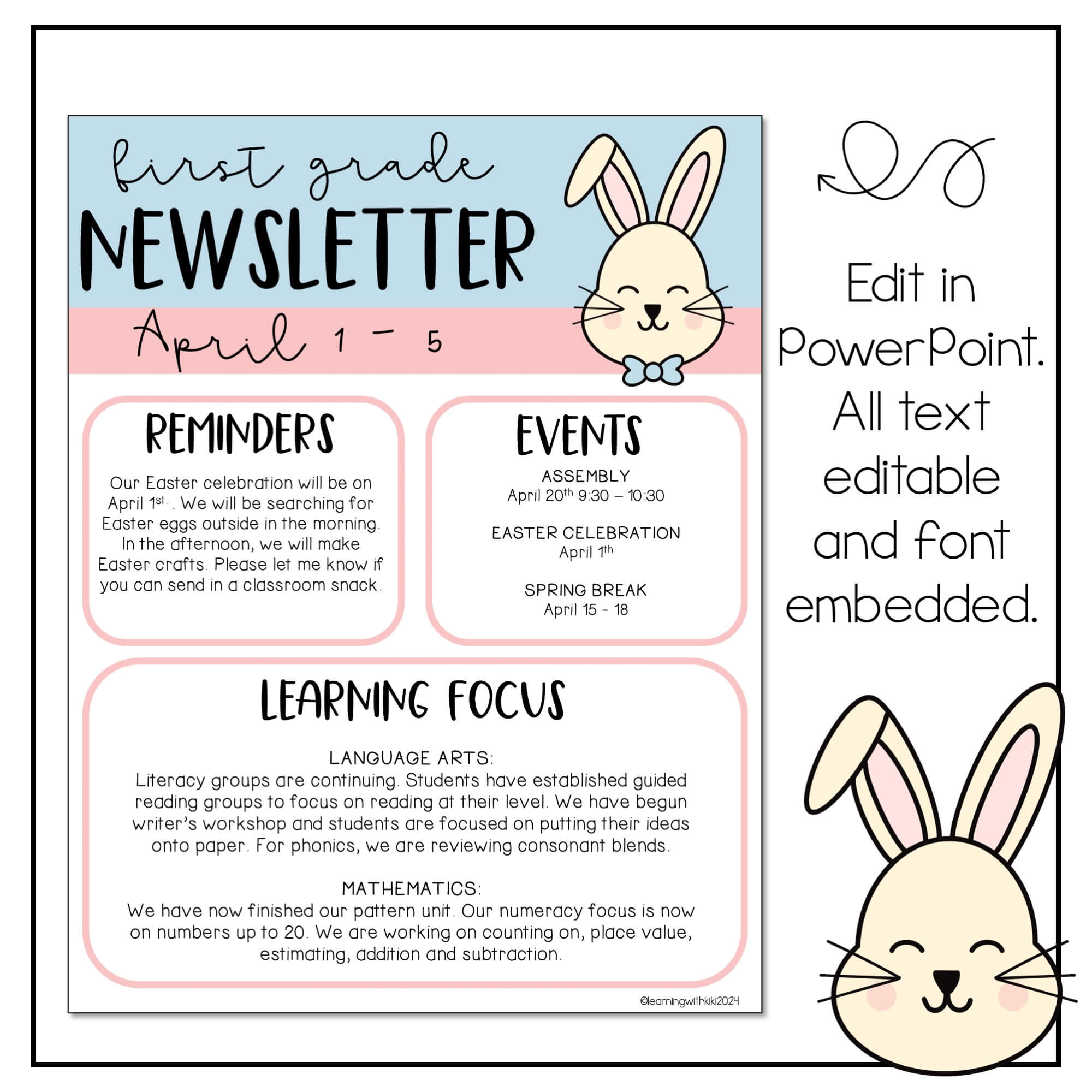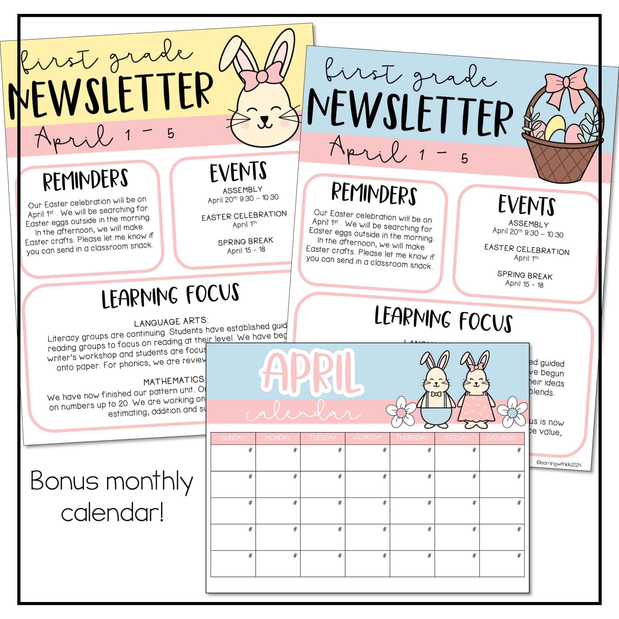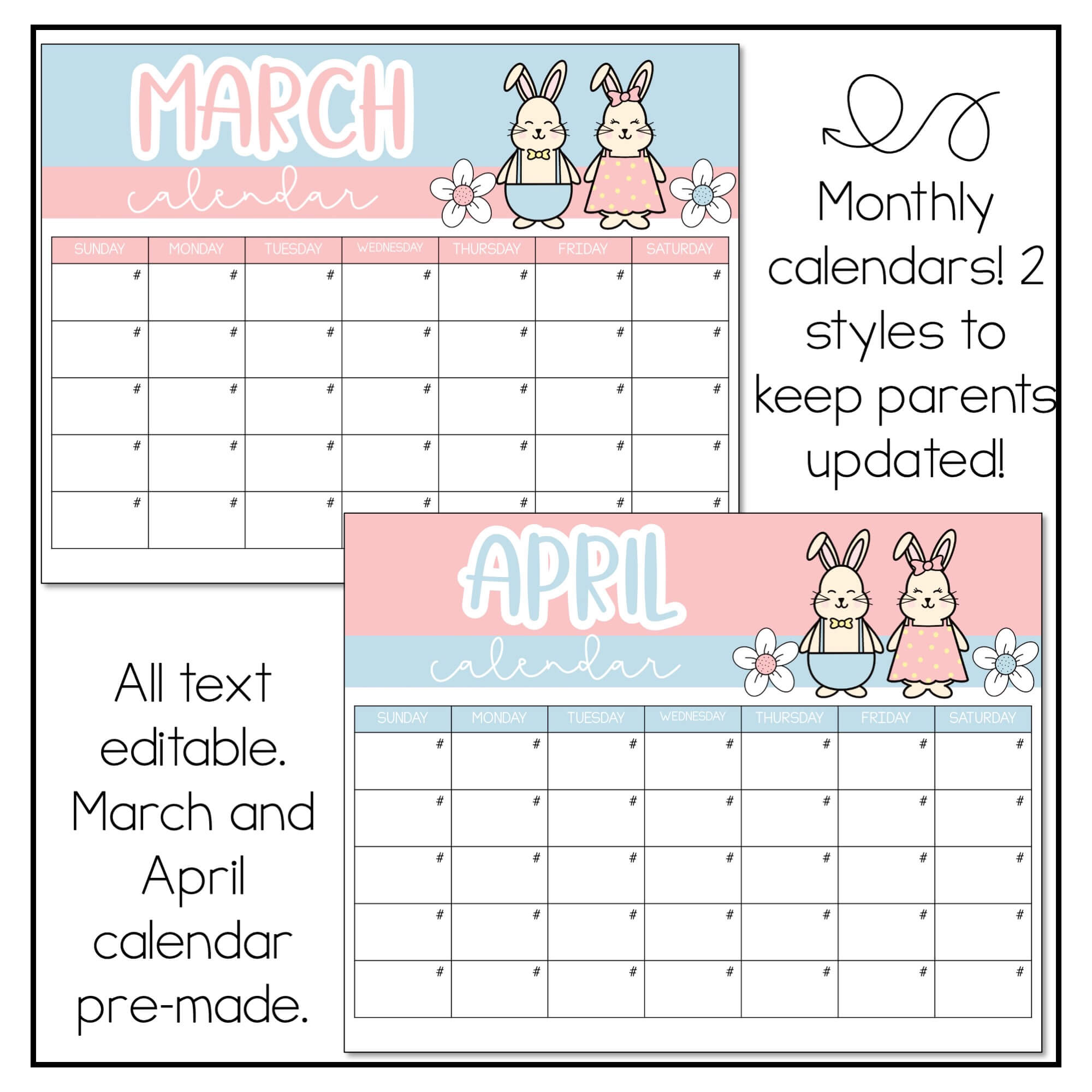 This weekly or monthly editable Easter Classroom Newsletter themed newsletter template is perfect for your trendy classroom! The March and April printable newsletter has an adorable bunny, flower and basket design. The template is completely text editable through PowerPoint and the font is embedded. This pack now includes a BONUS calendar! I recommend printing one, hanging it outside of your classroom and then sending it digitally to parents to save ink!