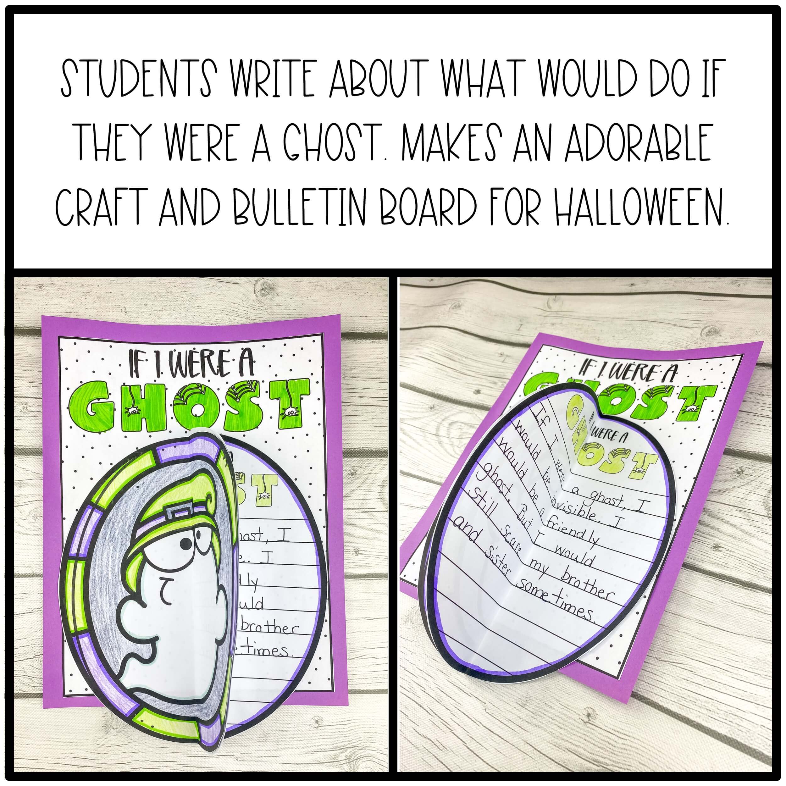 Your students will love making this Halloween writing activity ghost craft! The If I Were a Ghost 3-D writing craftivity is simple, requires no prep and will create an adorable bulletin board or display. The quote is “I WERE A GHOST” and “LIFE AS A GHOST.” Your students can decorate a cute ghost and then fill out the writing prompt.
