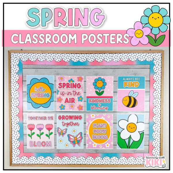 Decorate your bulletin board for March, April or May with these trendy Spring posters! This cute flower bulletin board idea or classroom display is a great way to decorate your classroom. The printable posters have cute flowers, butterflies, bees and more. The posters include an editable template, through PowerPoint, with the fonts embedded.