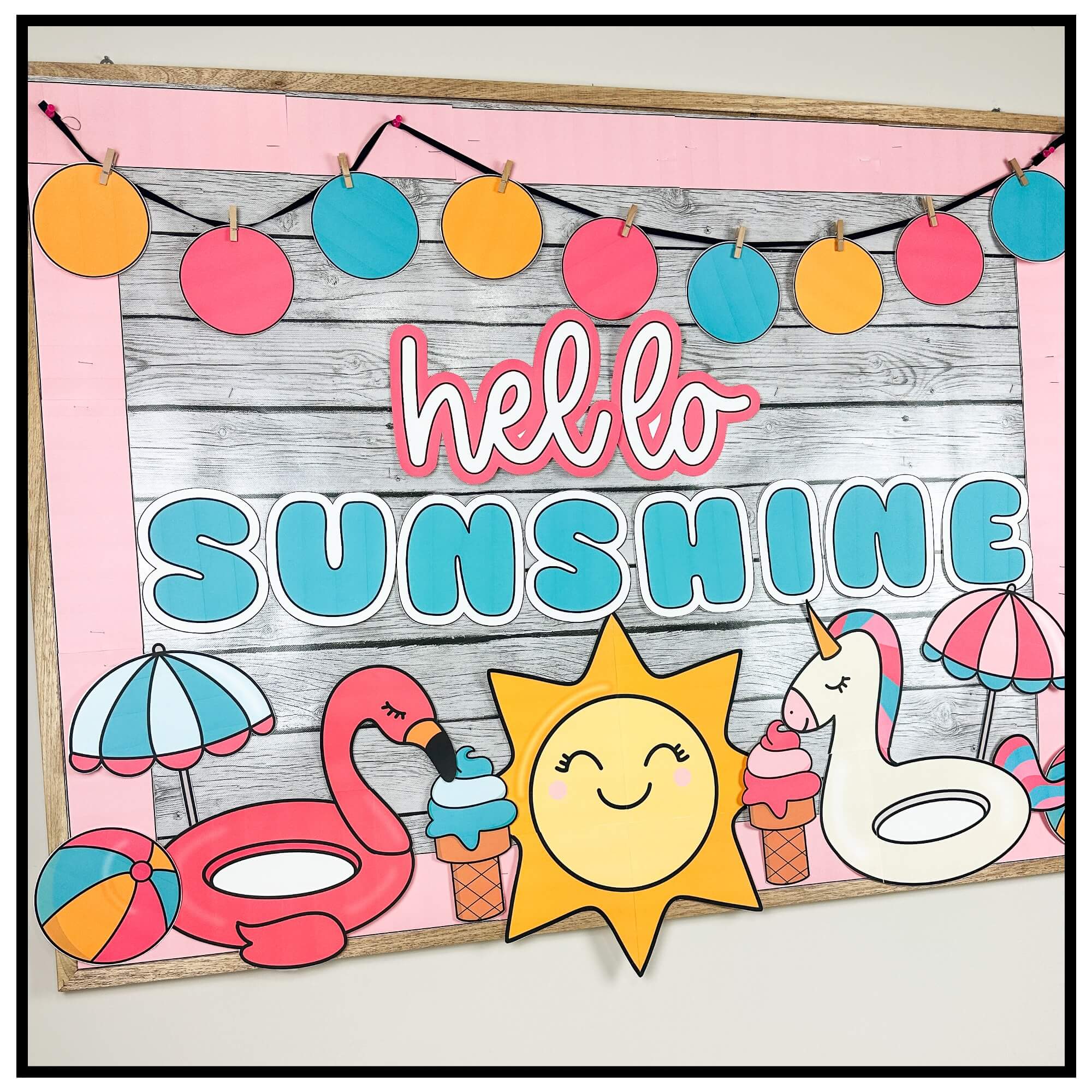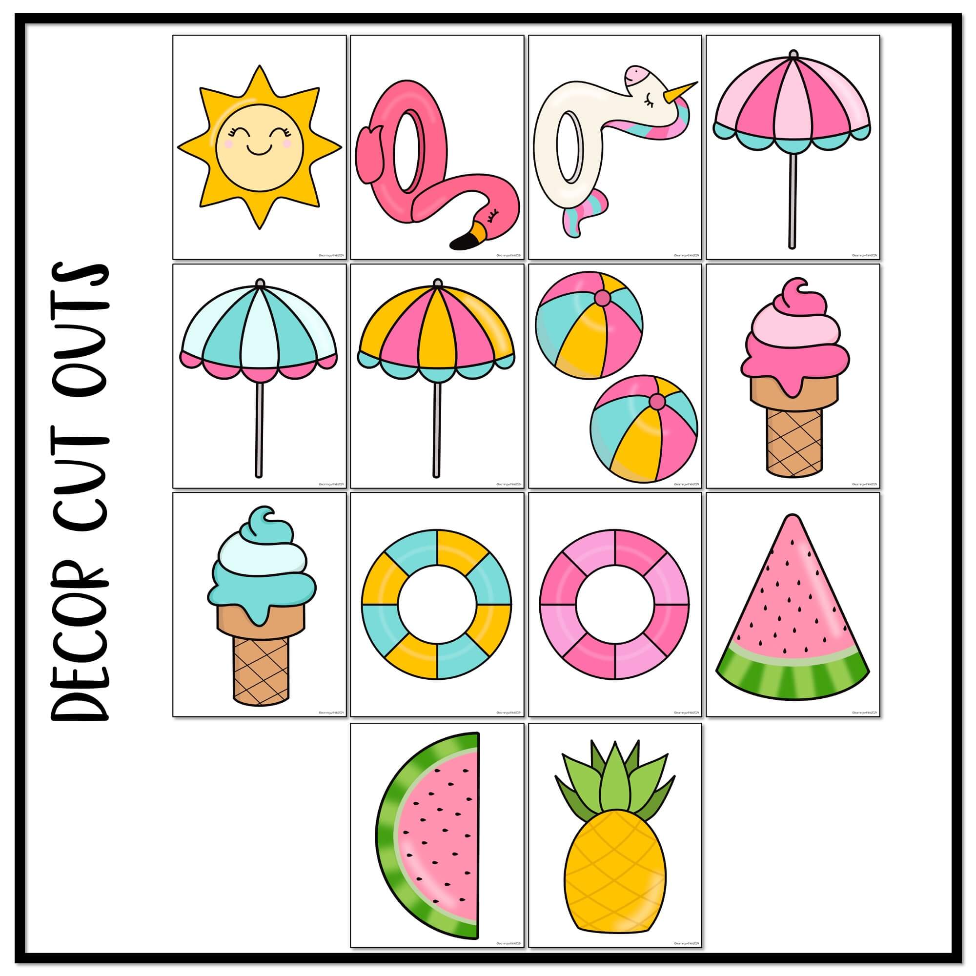 This Summer bulletin board is just what you need to decorate your classroom for summer and the end of the year with this trendy, floatie themed bulletin board kit! These May and June printable designs include ideas for a sun, pool floaties, beach ball, fruit and more. This bulletin board pack includes bunting, borders, editable quotes and editable student names (through PowerPoint with the fonts embedded).