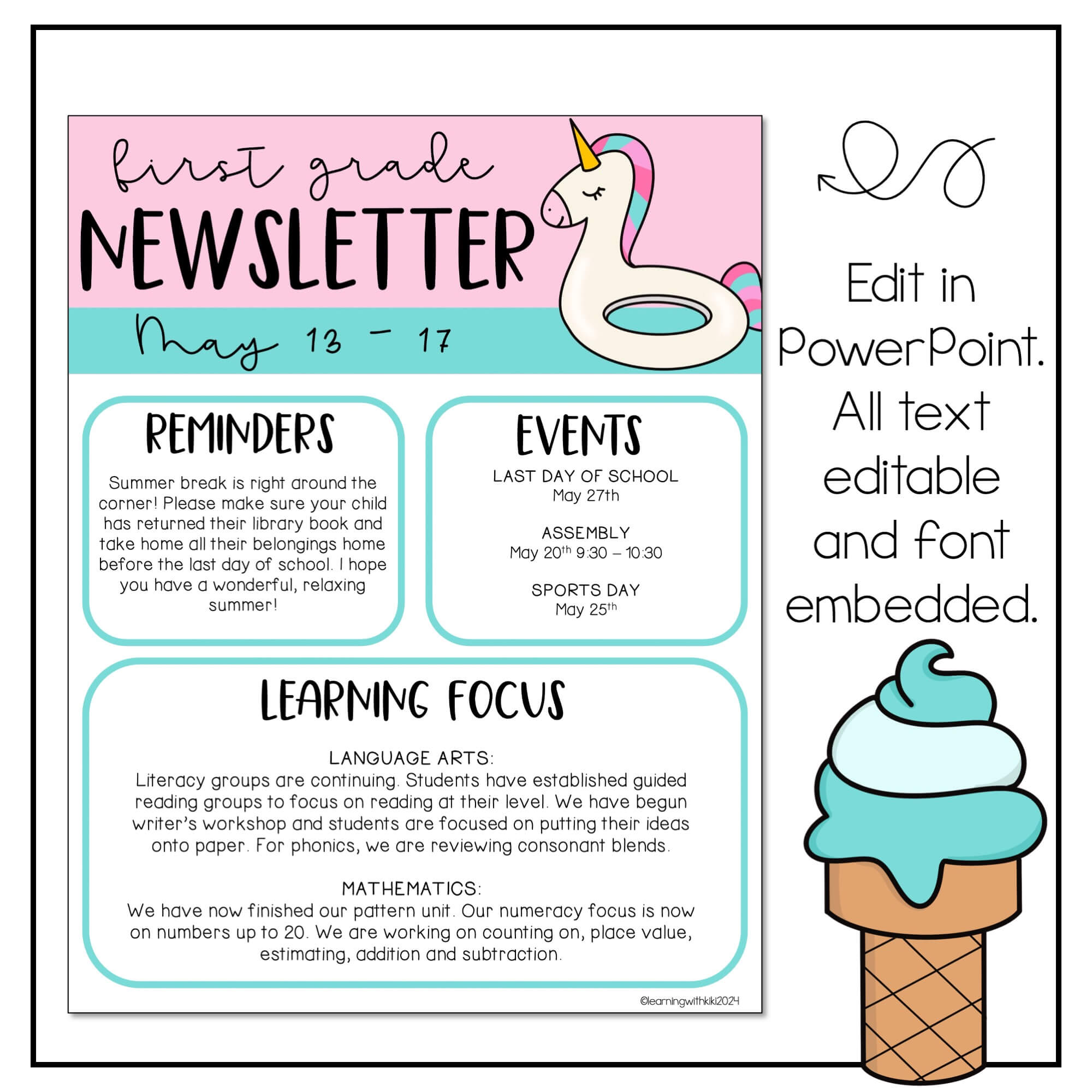 Summer Classroom Newsletter Template | May June